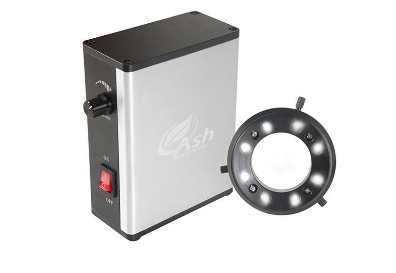 Den avtagbara 8-punkts LED ringbelysningen har ljusintensitetskontroll och avger ett vitt ljus.